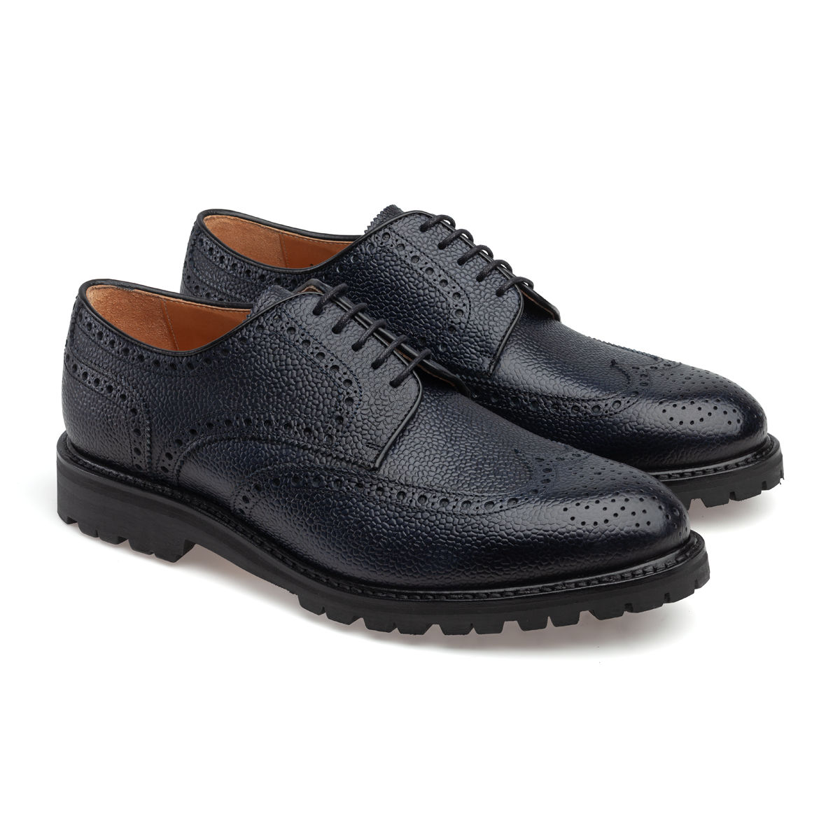 Berwick 4170V Navy Grain — это практичные броги, сшитые из синей зернистой кожи и оснащённые открытой шнуровкой. Они выглядят достаточно неформально, такие туфли требуют более внимательного подбора к другой одежде. А в России они особенно уместны благодаря своей выносливости.