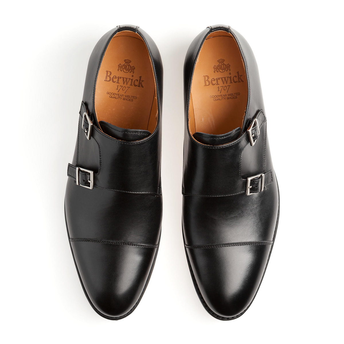 Berwick 3637 Box Calf Negro Rubber — это чёрные кожаные монки с двумя пряжками. Классическая и довольно строгая модель, которую можно носить и с деловыми костюмами, и с непарными брюками — желательно довольно тёмными. При желании такие монки можно надеть и с джинсами, хотя мы бы рекомендовали для джинсов менее строгие цвета — коричневый и бургундский.