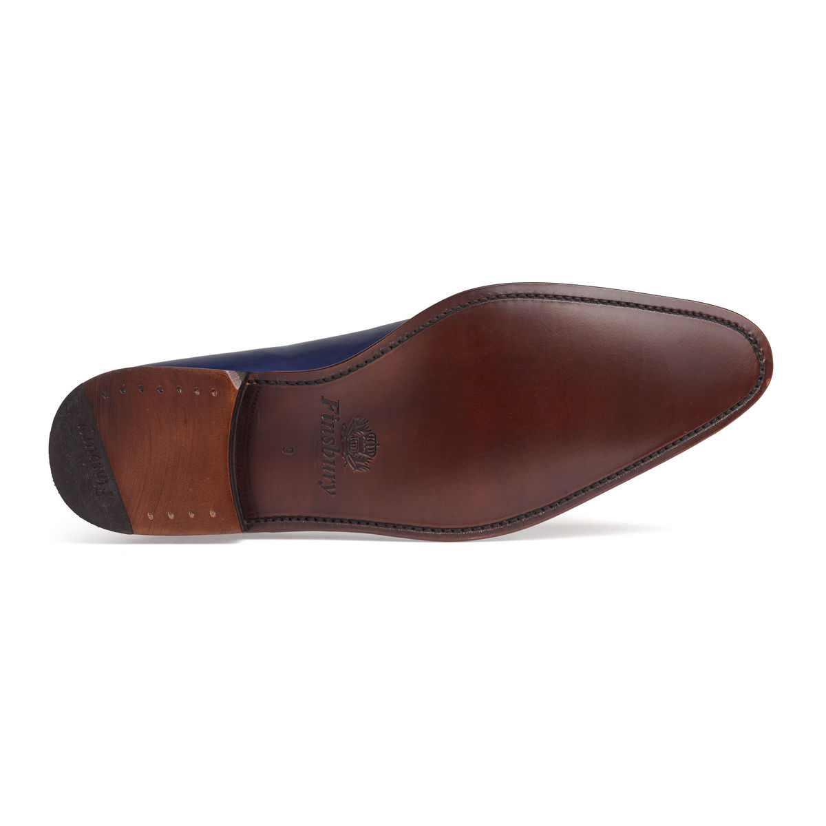 Finsbury Giulia Blue — это оксфорды-хоулкаты, выполненные из телячьей кожи синего оттенка с патиной. Они выглядят не сильно строго и могут смотреться уместно в театре, музее, ресторане и многих других местах.
