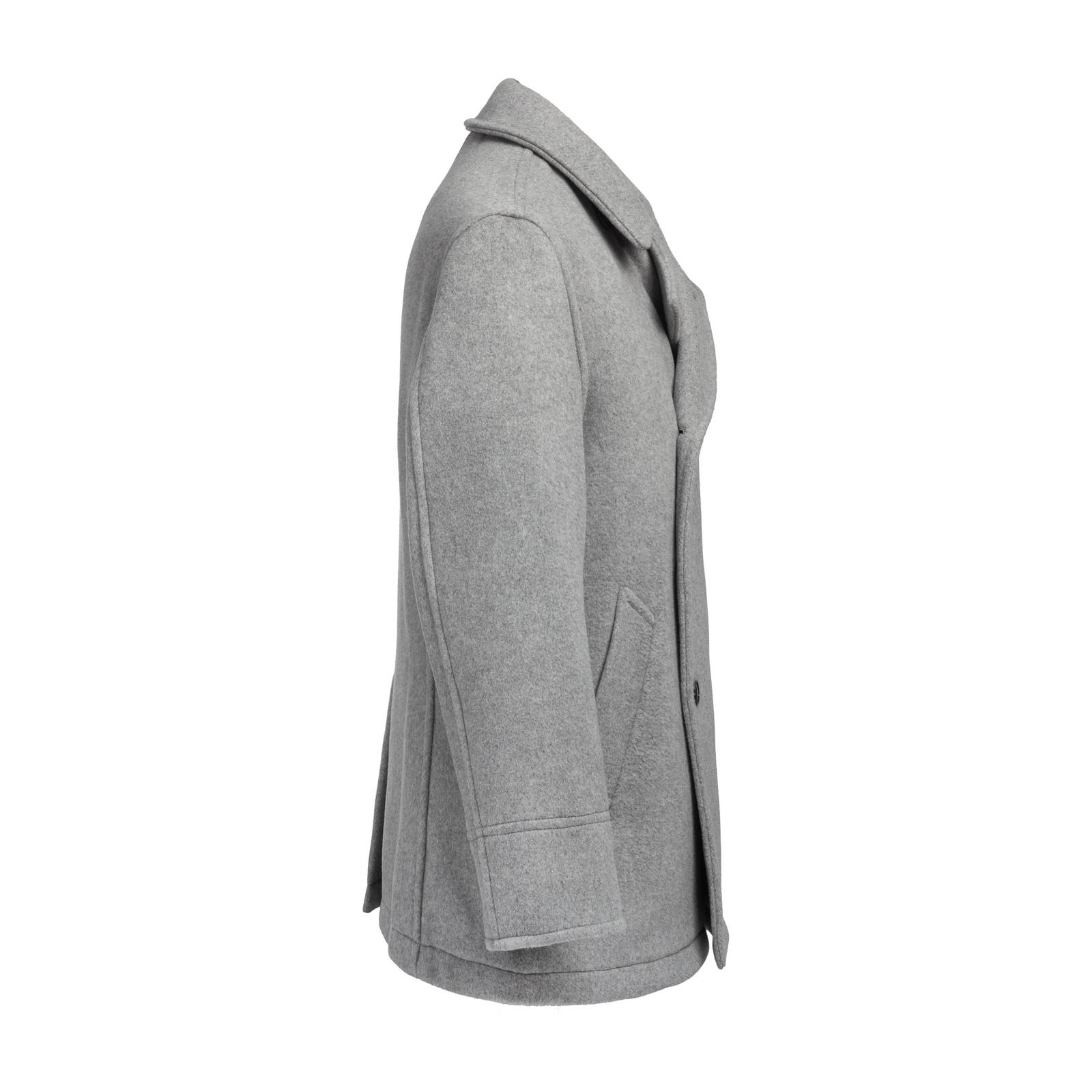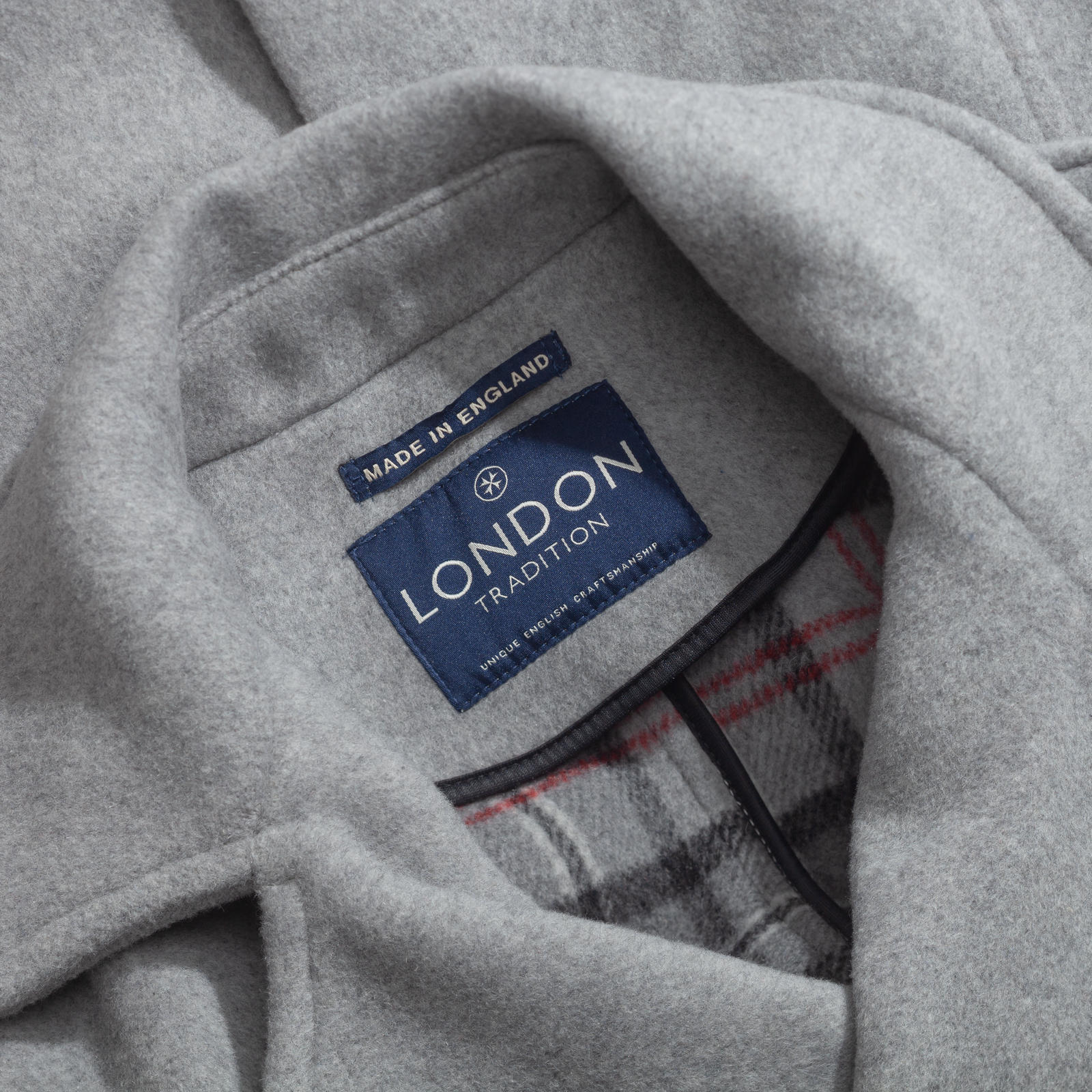 Светло-серая модель бушлата Scott Pea Coat сшита на фабрике производителя London Tradition в Лондоне.